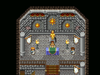 Doch just, als der lichtbringende Gott seinen Strahl auf den Helden senkt, bricht mit einem herzhaften "Verdammt! Ich bin zu fett!" der alternde Abenteurer Gisulf durch das Deckengebälk des Tempels, schleudert dabei den Erwählten zur Seite und wird so selbst das unfreiwillige Ziel des göttlichen Lichts. Das gibt Anlass zur Irritation.